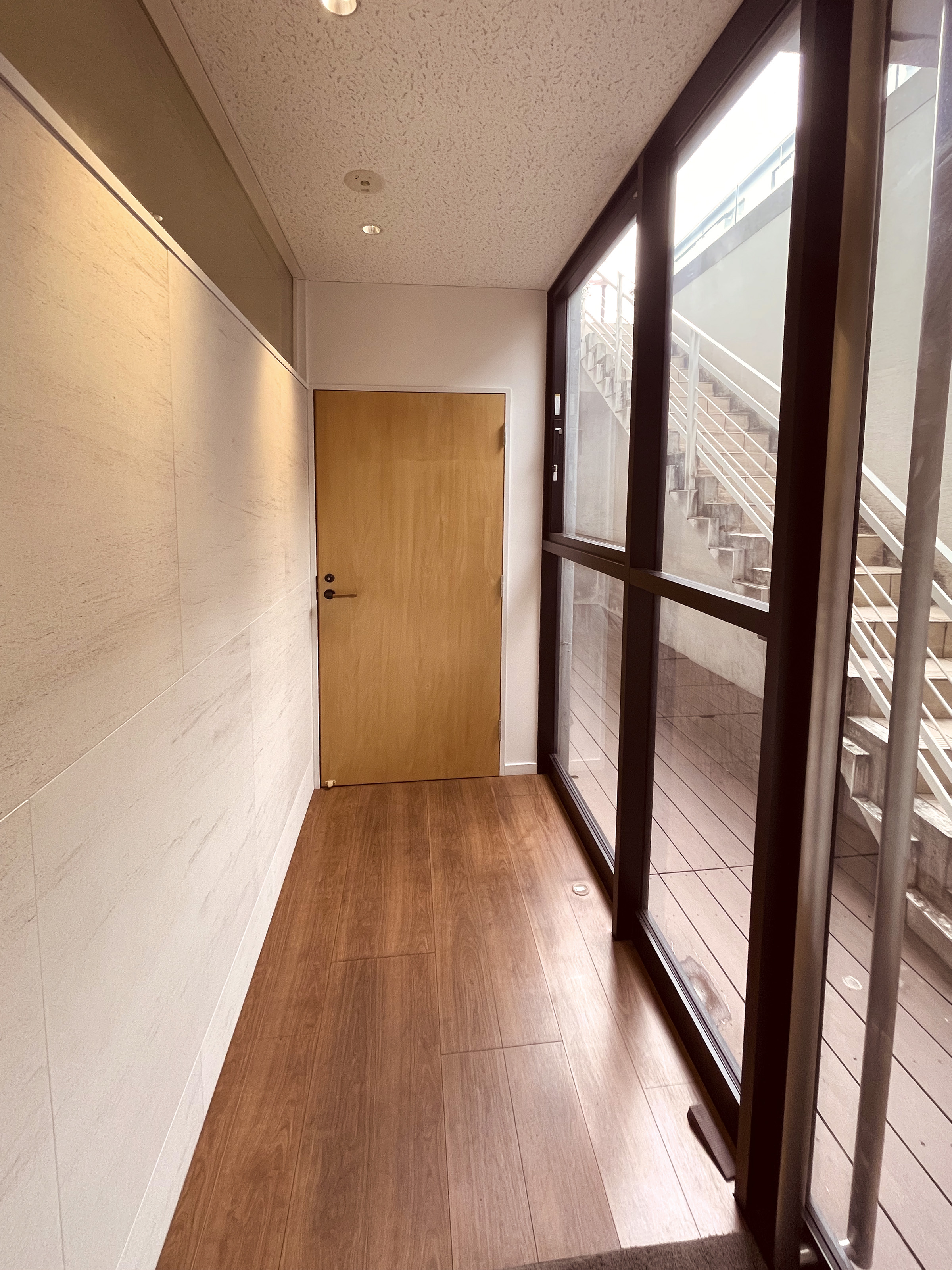 地上から地下へと降りる階段を進むとクリニックの入口が目に入る。そこには患者のプライバシーを守る役割がある。プライバシーを守るために限定的になると採光窓が小さくなる。採光窓に意味をもたせるための窓の位置、大きさを形にした。アプローチからは導かれるような光となり、診察室から出たときには希望を与えるような光となるように計画している。